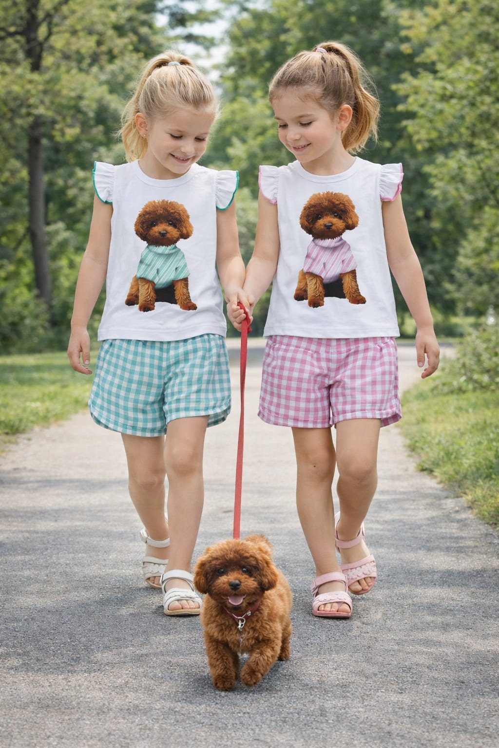 Está compuesto por una camiseta de manga corta con diseño de perrito, un detalle adorable que encanta tanto a niñas como a padres. El estampado del perrito aporta un toque divertido y tierno, ideal para looks casuales y momentos de juego. La camiseta está confeccionada con tejidos suaves y transpirables, pensados para cuidar la piel delicada de las niñas y ofrecer comodidad durante todo el día.
